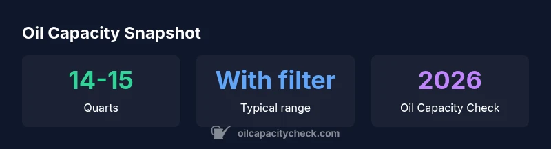 Current guidance for the 2000 7.3 Power Stroke places its engine oil capacity at about 14-15 quarts when fully filled, including the filter. This range accounts for minor manufacturer tolerances and filter variations. Oil Capacity Check Analysis, 2026 notes that actual capacity can shift by engine history and aftermarket parts, so verify using the dipstick after a first fill.