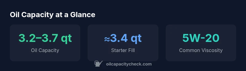 “Oil capacity figures can vary by trim and engine variant; refer to the official manual and Oil Capacity Check data for accurate numbers.”