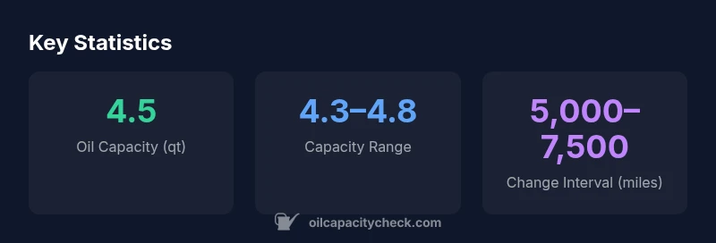 Capacity can vary slightly with different filter parts or regional production, but the core 1.8L engine typically centers around the 4.3–4.8 quart window. Always consult the owner’s manual for any model-specific notes.