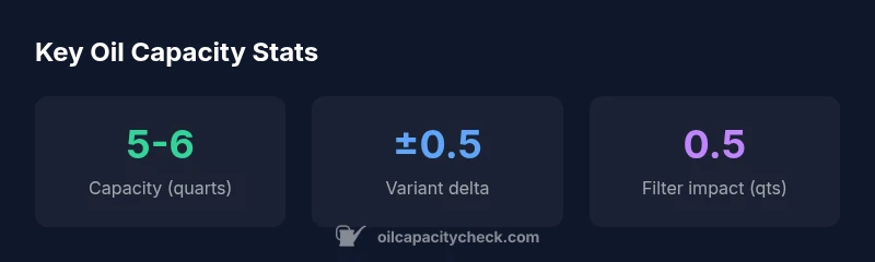 A careful oil change starts with an accurate plan. Begin with a clean workspace, gather the right oil grade and filter, and set up a catch basin for the drained oil. The typical workflow is to drain the old oil completely, remove and replace the oil filter, then add oil gradually, using a mid-range target around 5 quarts. Start the engine for 1-2 minutes to circulate the new oil, shut off, wait a few minutes, and recheck with the dipstick. If the level sits below the full mark, add small increments (0.25-0.5 quart) until the dipstick reads within the safe range. Remember that the exact required amount may vary by variant and filter choice, so confirming with your dipstick is essential.