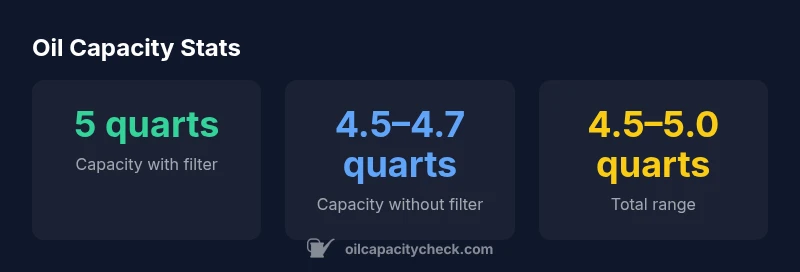| Capacity (with filter) | 5 quarts | Oil Capacity Check Analysis, 2026 |