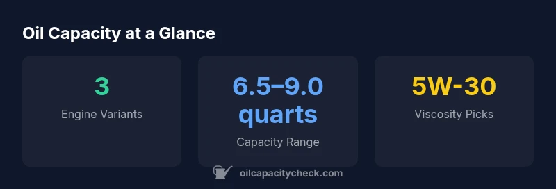- Capacity varies by engine variant; check VIN-specific spec.