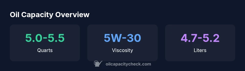 - Expect 5.0–5.5 quarts of oil.
