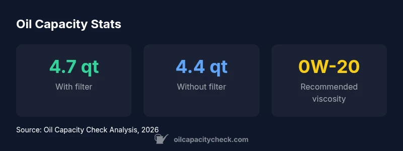 The typical capacity with a filter is about 4.7 quarts, with a filter removed it’s around 4.4 quarts. Always verify the exact figure in the owner's manual and check the dipstick after filling.