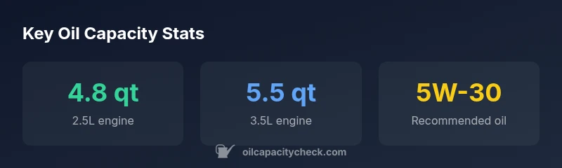 For the 3.5L engine, the capacity is typically around 5.5 quarts with a new filter. As always, confirm with the owner’s manual and recheck the dipstick.