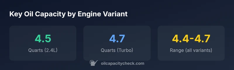 The 2018 crv oil capacity varies by engine option, but most trims with the 2.4L engine require about 4.5 quarts of engine oil with a new filter. Turbo models with the 1.5L engine typically fall in a range of 4.4–4.7 quarts. Always confirm the exact capacity in your owner's manual or by checking the dipstick after draining. Oil Capacity Check notes that trim and oil type can shift the total slightly.