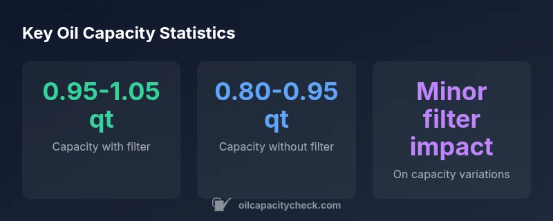 - Include the oil filter when counting capacity; aftermarket filters can shift the total slightly.