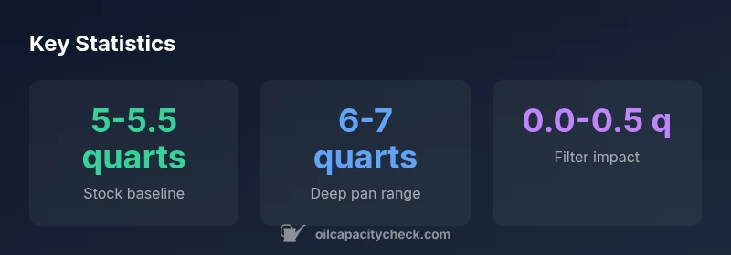 Aftermarket oil pans are a common upgrade to improve oil capacity, cooling, and clearance under the crankshaft. Deep or baffled pans increase the system’s total oil volume by roughly three-quarters to one quart in many cases, placing the range commonly around 6 to 7 quarts when the filter is included. The exact difference depends on the pan's internal baffles, the pickup location, and whether a big-bore pickup is used. If you install a large-capacity pan, make sure the pickup stays submerged during cornering and that the drain plug seats properly. While the increase can be appealing for high-performance or racing builds, it also requires rechecking the oil level more frequently until you confirm the new baseline.