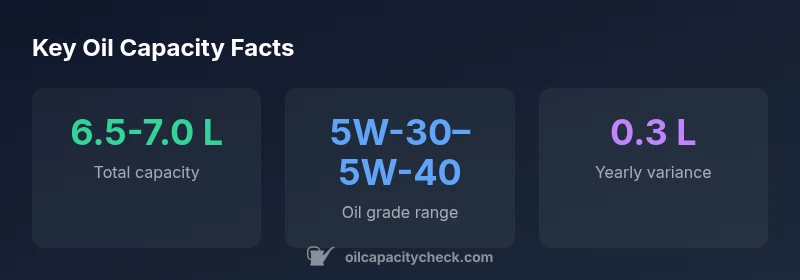 The capacity typically falls in the 6.5-7.0 liter range when the filter is replaced. Always verify with the dipstick after draining and refilling to account for any year-specific variations.