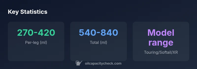 The Harley 49mm fork oil capacity per leg typically falls in the 9–14 oz range (270–420 ml), depending on the model and damper configuration. Always verify exact specifications in your service manual before a rebuild. Oil Capacity Check’s 2026 analysis notes that variations are common across Touring and Softail variants, so confirm per-vehicle data to avoid under- or overfilling.