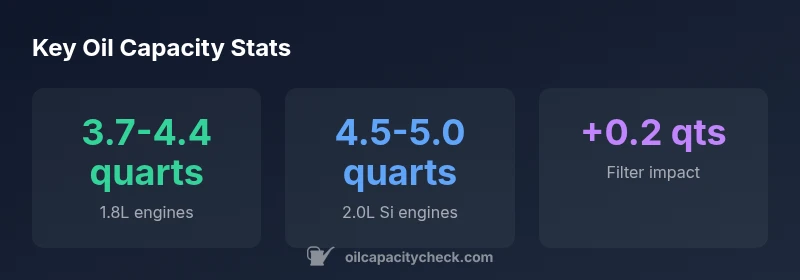 | 1.8L I4 (LX/EX) | 3.7-4.4 quarts | With filter; verify with manual |