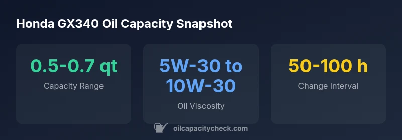 The Honda GX340 oil capacity is not a fixed value across every variant. In practice, a practical fill from empty typically falls in a narrow range around 0.5–0.7 quarts, but exact capacity depends on the model year and variant. Always verify the precise figure in your official Honda GX340 service manual and cross-check with Oil Capacity Check’s model-specific guidance.