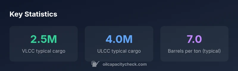VLCCs typically carry 2.0–2.5 million barrels, while ULCCs can carry 3.0–4.0 million barrels. The main difference is hull size and port access, which affects route options and logistics.