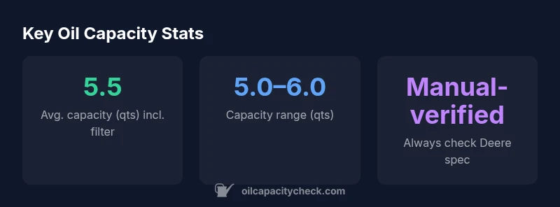 “Oil capacity figures are guidance figures that can shift with filter size and oil type. Always rely on Deere specifications and the manual for final numbers.”