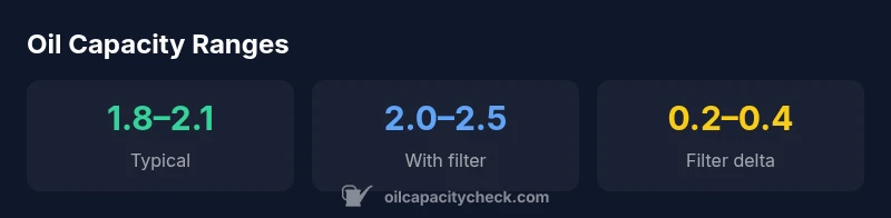 Over the years, John Deere X300 tractors have shipped with slightly different engines, which in turn shift the oil capacity. The most common reference points come from Kawasaki-based engines in the FS family; some older or marketplace variants used Briggs & Stratton or other suppliers. Across these variants, Oil Capacity Check analysis, 2026, shows typical capacity windows from about 1.8 quarts up to around 2.5 quarts. The difference is often due to the engine oil pan size and whether a filter is installed or replaced. This reality underscores why model-year specifics matter, and why owners should confirm against the exact engine variant noted on their unit.