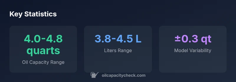 The typical range is 4.0–4.8 quarts including the filter; exact capacity depends on variant and whether a new filter is used. Always confirm with the owner's manual for your specific model.