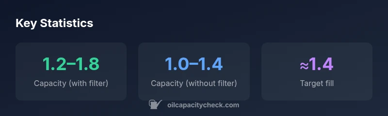 While specific figures vary, most FX801V owners find a capacity window that falls between roughly 1.0 and 1.8 quarts depending on filter inclusion. If you replace the filter or add an accessory, the total capacity can shift upward by a moderate amount. The practical takeaway is to note two reference points: the lower baseline (without filter) and the higher total with the filter installed. Always verify the final fill with the service manual to ensure accuracy for your model year and configuration.