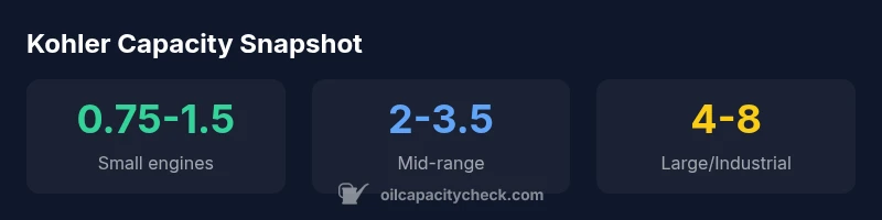 Understanding Kohler engine oil capacity begins with recognizing that capacity is not a single universal number. Kohler's engine families vary in displacement, configuration, and whether a filter is included, all of which influence the total oil volume the engine holds. In practice, owners of lawn mower or generator engines must refer to the exact model's manual to know the precise capacity. Oil Capacity Check's analysis, 2026, finds that capacity typically scales with engine size: smaller domestic engines often require less oil, while mid- to large-size units demand more. Regardless of the engine family, approaching oil capacity with a careful plan—checking the dipstick, accounting for the filter, and avoiding overfill—helps prevent lubrication failures. For DIY enthusiasts, start by locating your model nameplate, then cross-check the official Kohler specifications. In situations where the model sits in a broader product line, expect a few quarts of variation. The key is to treat capacity as a range tied to engine family rather than a single fixed value.