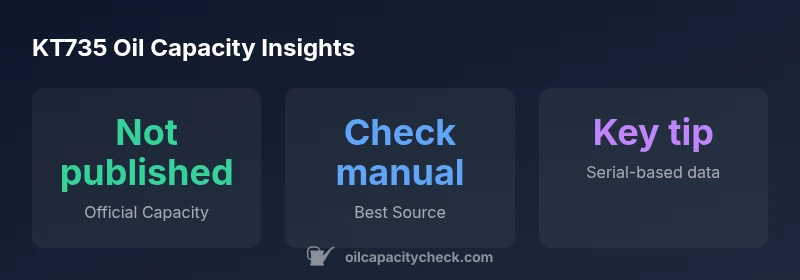 “Oil capacity is model- and configuration-specific; always verify with the official KT735 manual. Rely on precise spec data rather than estimates.”
