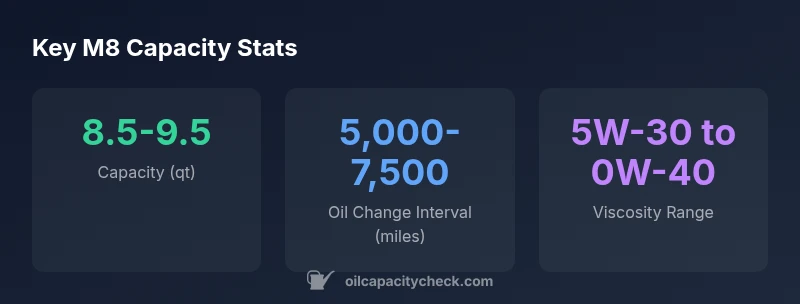 Learn the m8 oil capacity, how to verify it, and best practices for BMW M8 maintenance. Ranges, steps, and maintenance tips from Oil Capacity Check.