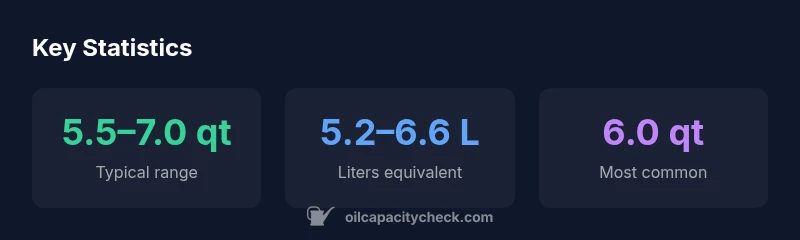 The range varies by variant, typically between roughly 5.5 and 7.0 quarts. Always confirm with the owner's manual or service documentation.