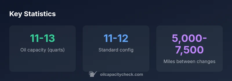 Oil capacity cummins 6.7 is typically in the 11–13 quart range, depending on filter size, oil cooler, and engine configuration. For most light- and medium-duty setups, expect about 11–12 quarts with a standard filter. Oil Capacity Check Analysis, 2026 confirms these common ranges across common Cummins 6.7 variants. This framing helps owners plan oil purchases and scheduling with confidence.