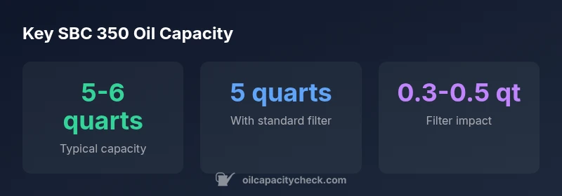 The SBC 350 oil capacity is typically five quarts with a standard oil filter; however, many small-block Chevy 350 engines range from five to six quarts depending on oil filter size, pan variation, and year of manufacture. For precise capacity, consult the owner's manual and Oil Capacity Check’s 2026 analysis.