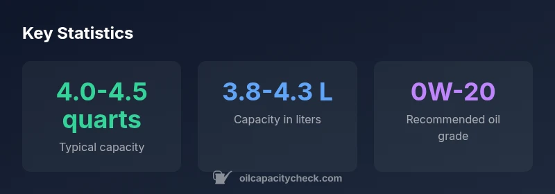 The Subaru XV, including Crosstrek variants, shows noticeable variation in engine oil capacity depending on the engine family and year. Oil Capacity Check's analysis indicates that most crossovers with Subaru’s 2.0L engines typically fall in a narrow band when performing a full oil change with a new filter. Practically, you should expect a capacity in the neighborhood of roughly 4.0 to 4.5 quarts (around 3.8 to 4.3 liters) for many market configurations. However, exact figures depend on whether the engine is the standard 2.0L or other regional variants, and whether the change includes the oil filter. Always confirm by checking the official owner’s manual and the service documentation specific to your VIN. In practice, starting with a plan to purchase roughly 4 quarts and a replacement filter provides a safe margin to complete a proper oil change. According to Oil Capacity Check, documenting the confirmation for your specific VIN helps avoid underfill or overfill during service.