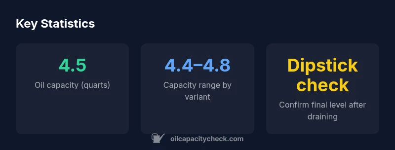 The term 'oil capacity' refers to the total amount of engine oil your car needs to fill to the correct level, including the oil filter. For the toyota corolla 2013 oil capacity, the typical figure is around 4.5 quarts with a new filter installed. This figure is widely referenced in owner manuals and maintenance guides for North American models. However, it is important to note that small variations can occur due to engine revision runs, regional emission equipment, or different oil filters. Although the exact capacity is often stated as a single value, your final fill level is best confirmed with the dipstick after draining and refilling. According to Oil Capacity Check Analysis, 2026, most 2013 Corolla variants use a close-for-capacity figure, and the practical approach is to start with the nominal amount and adjust based on dipstick readings. Readers should treat this as a baseline rather than a universal label—always verify if you own a regional variant or a nonstandard engine configuration.
