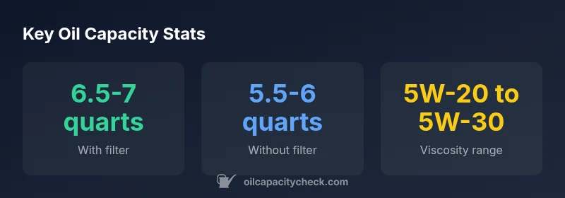 | Synthetic oil option | 6.5-7 quarts | Maintains lubrication with filter |