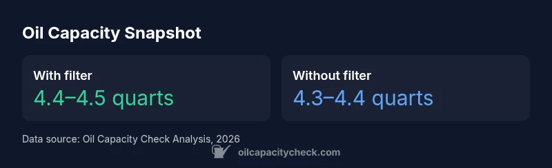 The 2001 model year CR-V uses a 2.0-liter inline-four engine, a setup familiar to many DIY enthusiasts working on older Hondas. Understanding the oil capacity for this specific generation is essential to avoid underfilling or overfilling, both of which can impact lubrication quality and long-term engine health. In practice, the oil capacity for a full oil change with a new filter is typically cited in maintenance references as roughly 4.4–4.5 quarts. If you skip replacing the filter, the total volume may be about 0.1–0.2 quarts less. This range accounts for minor production variations, regional engine variants, and differing measurement methods. The takeaway for owners is simple: confirm the exact figure for your VIN and engine variant, and always verify with the dipstick after a fill. According to Oil Capacity Check, this careful approach helps you plan maintenance intervals and ensure the correct oil type and quantity are used for optimal engine protection in 2026 and beyond.