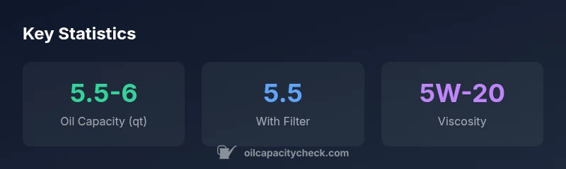 The typical capacity is 5.5 to 6 quarts with a new filter; verify your VIN in the manual and recheck the dipstick after warming the engine.