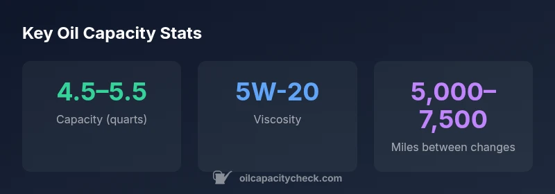 | Oil capacity (with filter) | 4.5–5.5 | Dependent on filter and drain plug |