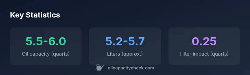 The typical capacity is about 6 quarts with a filter, with a practical range of 5.5–6.0 quarts depending on filter size and configuration. Always verify with the owner's manual for your VIN.