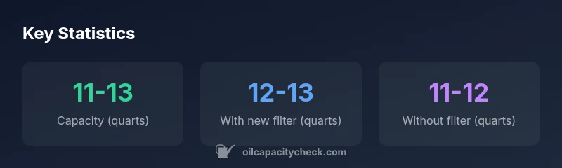 The official capacity typically ranges from 11 to 13 quarts depending on whether the oil filter is replaced during the service. Always verify with dipstick after filling.