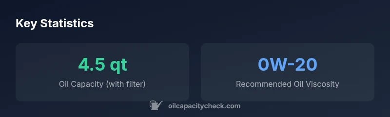 The typical capacity is about 4.5 quarts with the oil filter. Always confirm with the owner's manual and perform a dipstick check after filling.