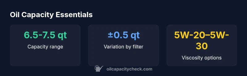 | With cooler or larger filters | 7.0-7.5 qt | Higher end of range with added capacity |