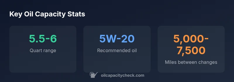 Seasonal temperature swings can influence oil viscosity; plan oil changes before extreme heat or cold. If you live in a hot climate, consider a slightly heavier grade within the manufacturer’s spec and ensure the capacity stays in the 5.5–6 quart range after filter changes. Regular checks with a warm engine help verify the correct level and prevent surprise low oil warnings. Keeping a log of oil type, change intervals, and capacity helps you maintain engine health over time.