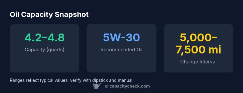 Key takeaway: start with the lower end of the range if you’re unsure, then top up gradually while checking the level on the dipstick. This approach minimizes waste and protects engine bearings. Oil Capacity Check’s broader data set for 2026 supports the view that the capacity is not a fixed number across all builds, highlighting the value of torqueing, draining, and refilling with care.