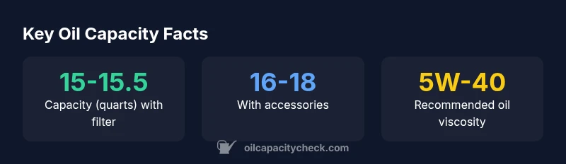 The official capacity is around 15 quarts with the filter; check your VIN data for exact figures.