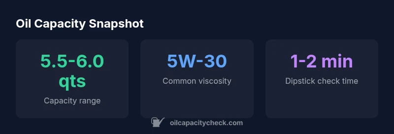 The oil capacity is generally 5.5-6.0 quarts with a new filter. Exact figures can vary by engine variant and market, so always verify with the dipstick after refilling and consult the owner’s manual for your specific build.