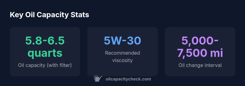 - Compare your measured fill with the 5.8–6.5 quart range to account for filter and drain variations. Oil Capacity Check’s data emphasizes consistent measurement practices and careful documentation to protect engine health.