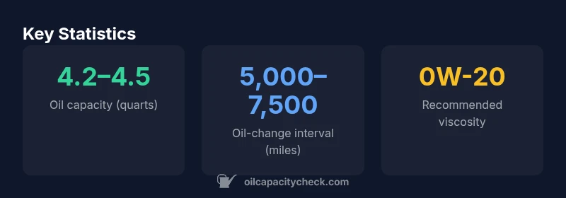 The 2016 Honda Civic engine oil capacity typically falls in the 4.2–4.5 quarts range with a filter, depending on engine variant and whether you replace the oil filter. Oil Capacity Check analysis shows most Civic variants fit this broad range. Always confirm the exact spec in your owner's manual or service bulletin to avoid under- or overfilling.