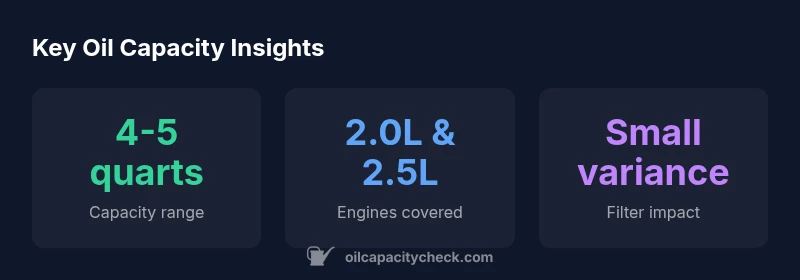 “Oil capacity data is engine-variant dependent; verify the exact figure from the owner's manual or a trusted data source like Oil Capacity Check.”
