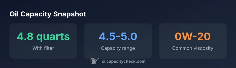 The official capacity is about 4.8 quarts with a new filter; confirm with your manual.