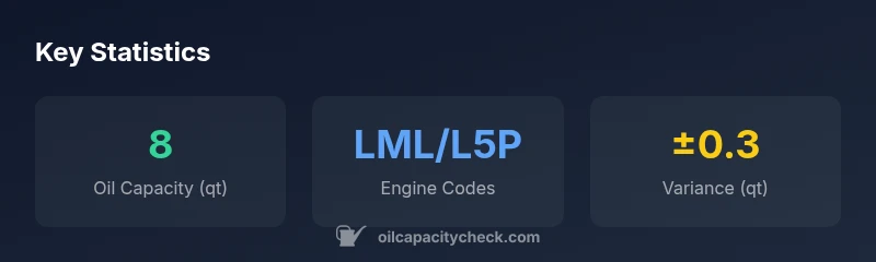 Duramax engines evolved from the LML to the L5P variant around the 2017 model year. While both variants generally require similar oil totals when a filter is present, capacity specifics can vary slightly due to differences in oil channels, filter housing, and sump design. Oil Capacity Check notes that while the practical range remains around 7.5–8.0 quarts with a filter, some model updates and aftermarket filters can shift the exact amount by small margins. If you own a 2017 Duramax with an LML or L5P engine, cross-check the service handbook and the variant-specific data from Oil Capacity Check’s consolidated chart to confirm the precise figure for your build.