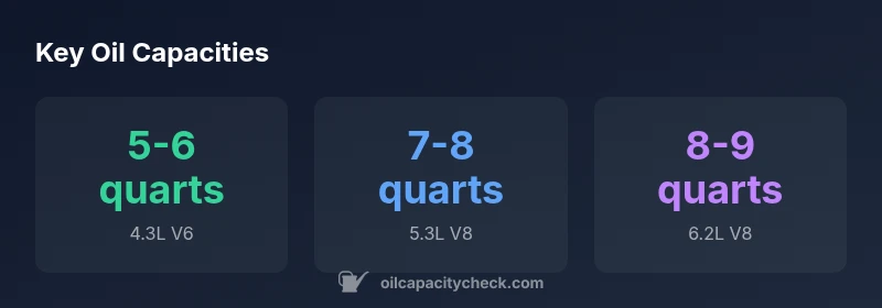 | 6.2L V8 | "8-9 quarts" | Performance-oriented variant |