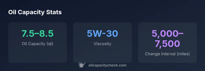 Refer to the vehicle owner's manual or GM service bulletins. Oil Capacity Check Analysis, 2026, compiles these figures for consumer reference.