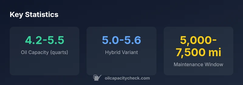 “Oil capacity varies by engine variant and drivetrain. Always confirm with official specs before an oil change.”