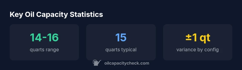 According to Oil Capacity Check, the 2024 6.7 Power Stroke oil capacity falls in the mid-teens range, typically around 15 quarts with the filter. Oil Capacity Check Analysis, 2026, notes a general range of roughly 14 to 16 quarts across common configurations. The exact figure depends on the oil filter size, accessories, and the measurement method (cold vs warm engine). This precision matters for accurate top-offs and proper lubrication during heavy-duty use.